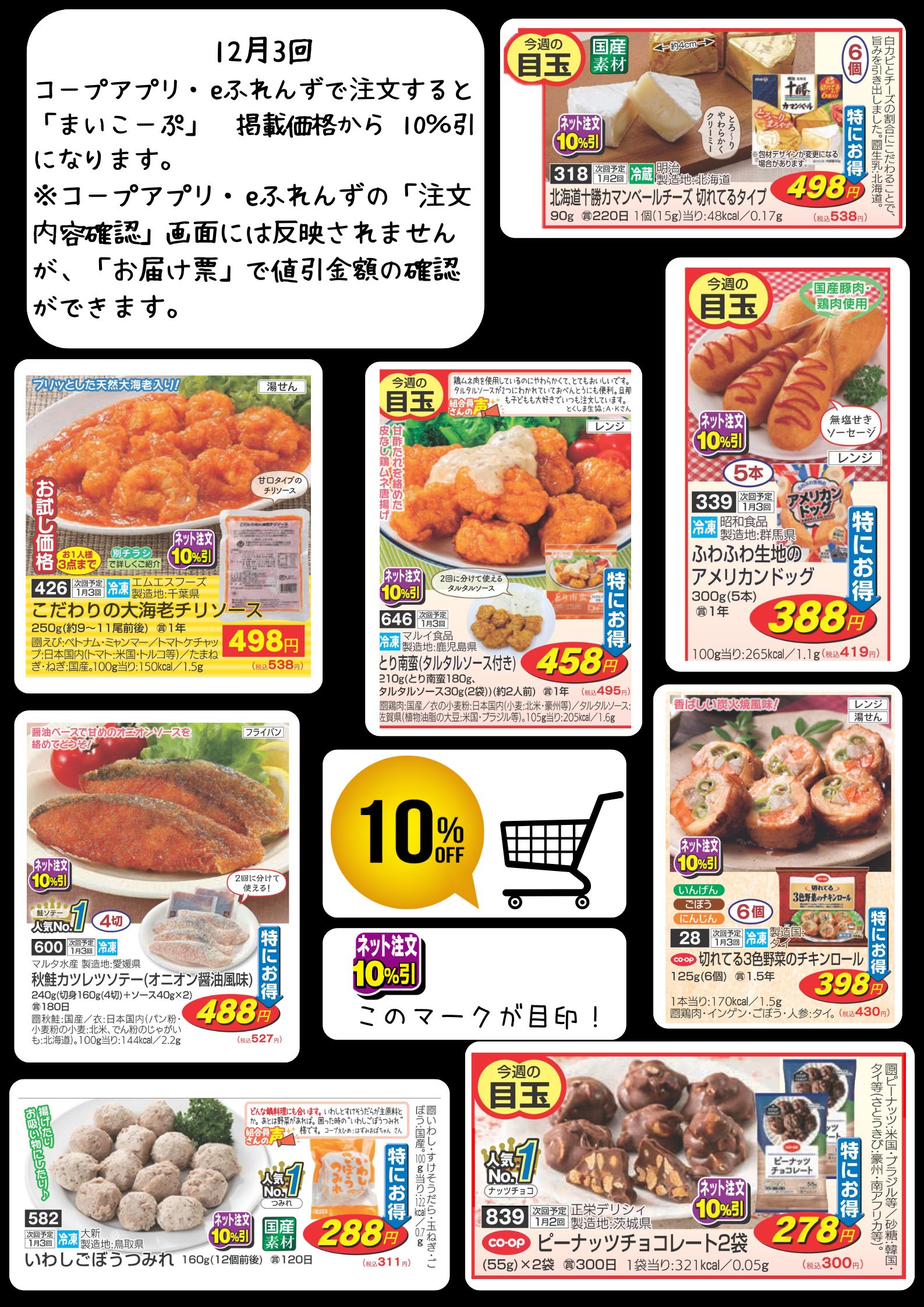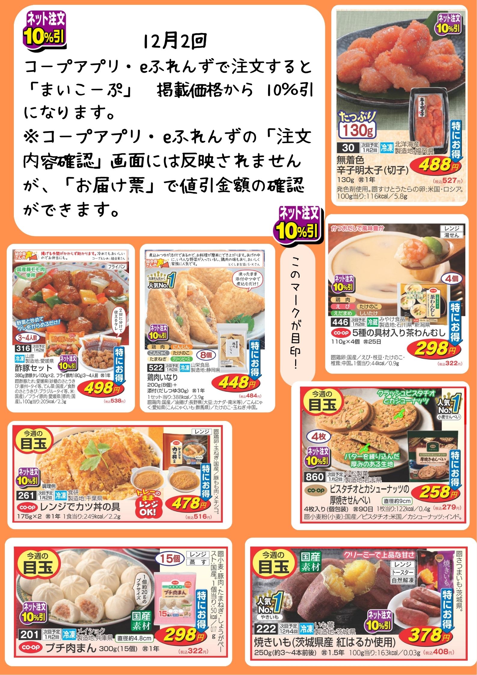 ☆月曜日配送・火曜日配送の方は、年内(12/29.30)に紙の注文書をご提出いただきますが、注文書を提出した後でもコープアプリ・eふれんずから1月2回の商品を注文する事が出来ます。お買い物忘れ・追加の注文にぜひご活用ください。