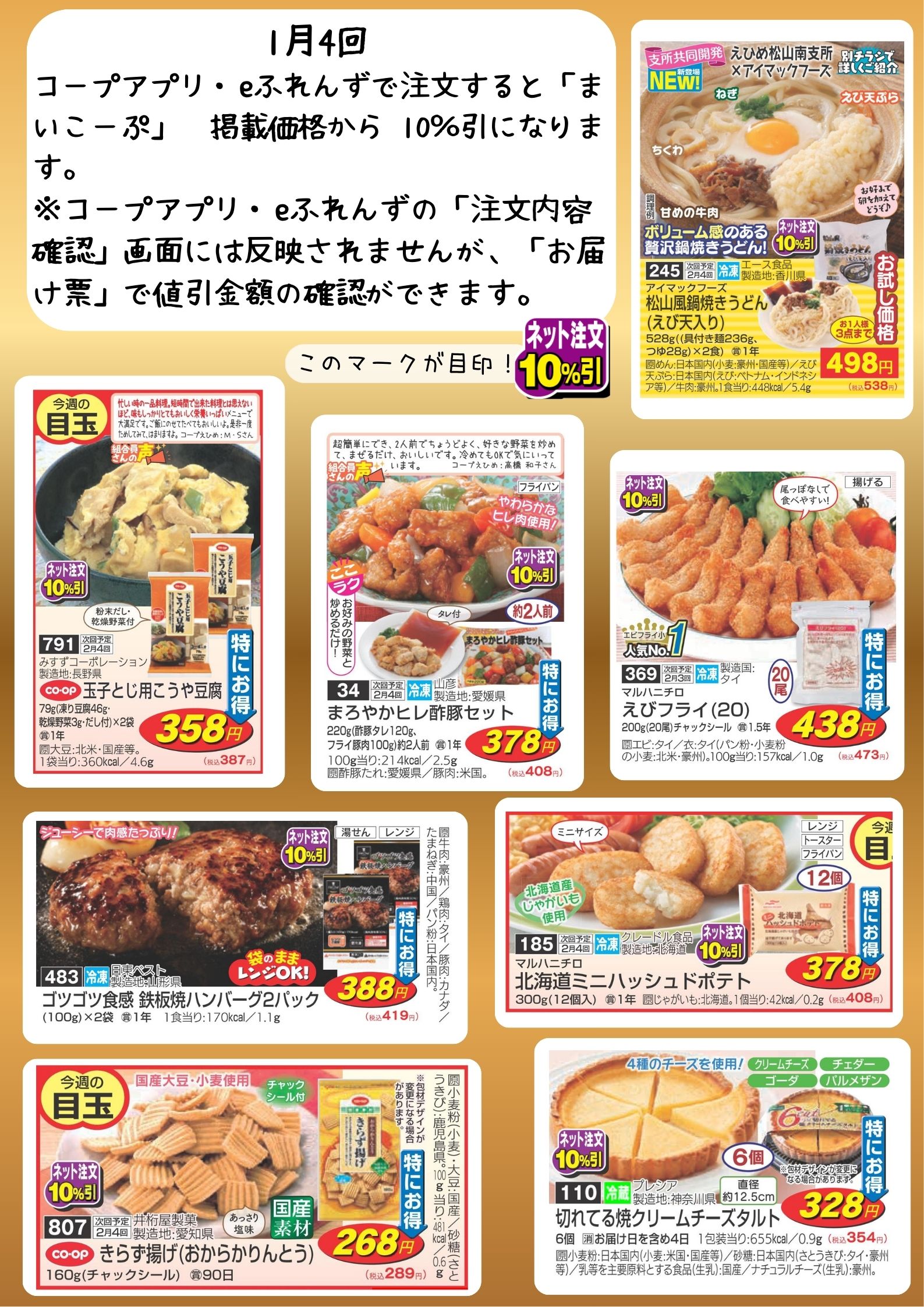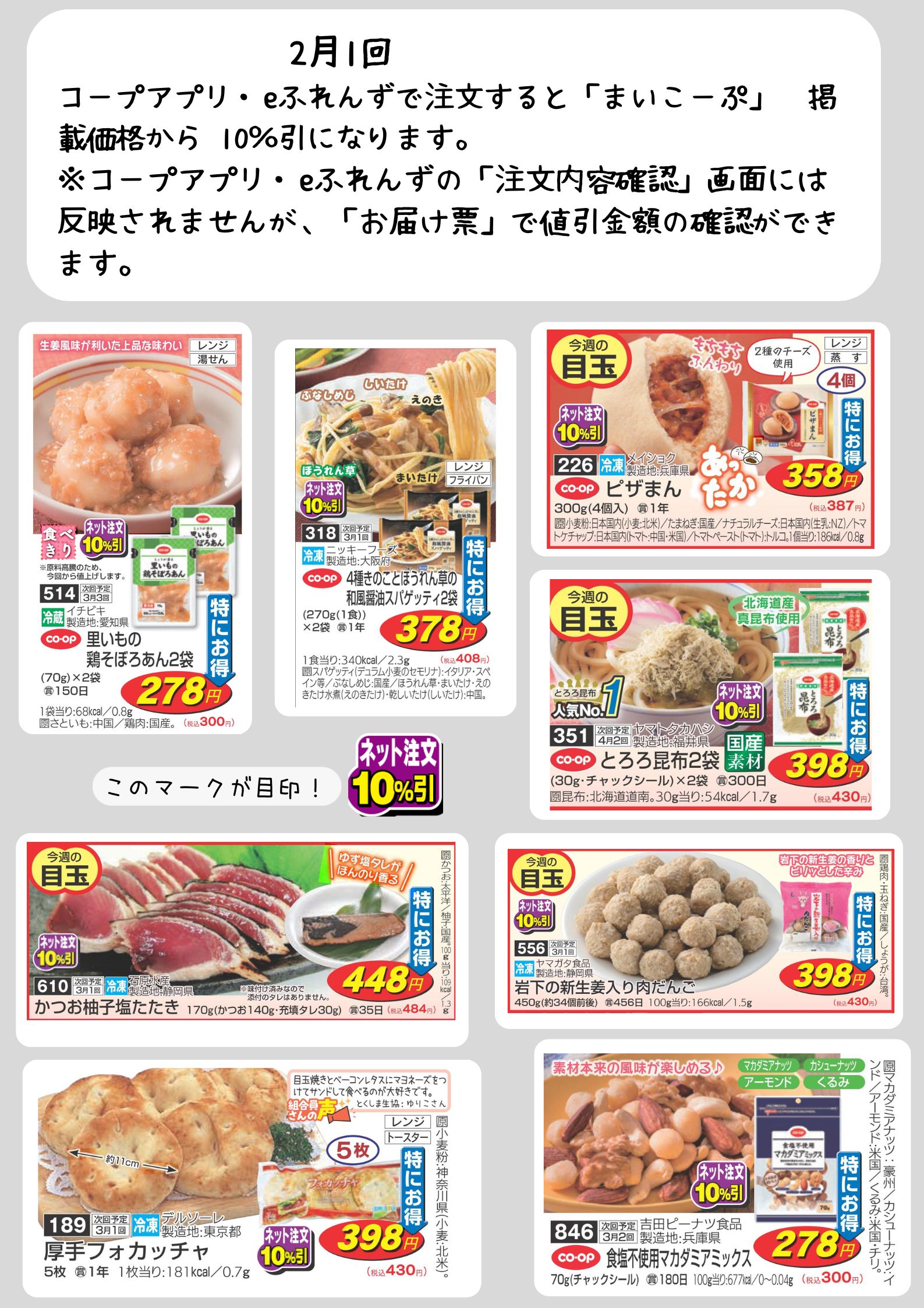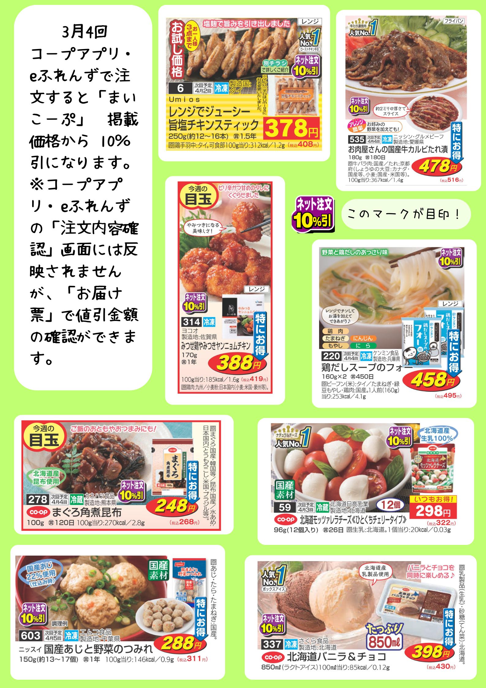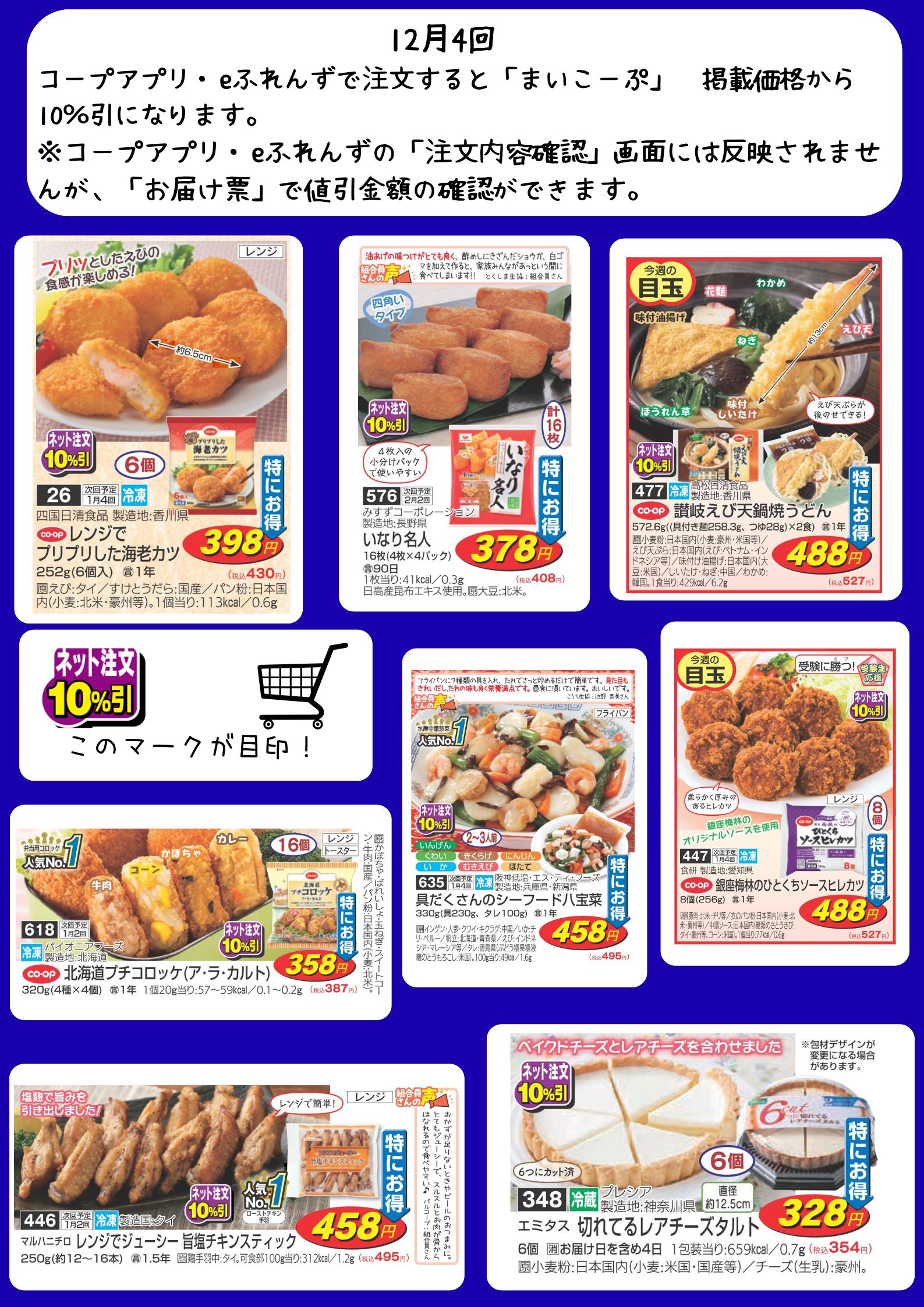 このマークがついた商品を、コープアプリ・eふれんずから注文すると、カタログ掲載価格から10%引!!